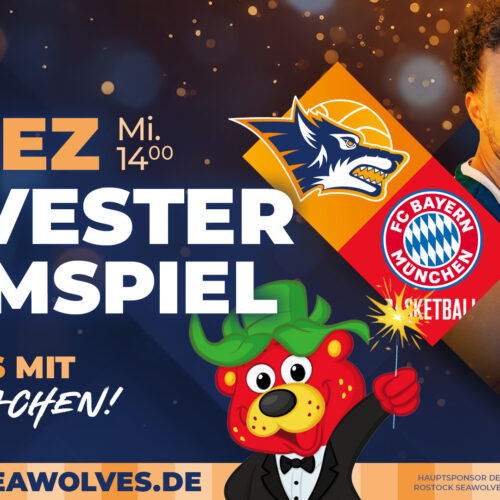 Vor ausverkauftem Hause unterlagen die ROSTOCK SEAWOLVES am Silvestertag dem Tabellenführer FC Bayern München mit 67:85 (31:40). Nach einem Neun-Punkte-Rückstand zur Halbzeit kämpften sich die Wölfe dank sechs erfolgreicher Dreier im dritten Viertel zurück und gingen sogar kurzzeitig in Führung. Im Schlussviertel sorgten die Münchner mit einem 15:0-Lauf für klare Verhältnisse und fügten den SEAWOLVES die dritte Niederlage in Folge zu. D’Shawn Schwartz kam auf 21 Punkte für die Rostocker, bei den Bayern sammelte Andreas Obst 29 Zähler. Die SEAWOLVES beenden das Kalenderjahr 2025 auf dem 13. Tabellenplatz in der easyCredit Basketball Bundesliga.