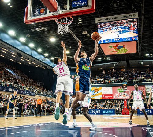 Am Mittwoch um 19:00 Uhr können die ROSTOCK SEAWOLVES Geschichte schreiben: Mit einem Heimsieg gegen den ungarischen Vertreter Falco Vulcano Energia KC Szombathely wäre erstmals der Einzug ins Viertelfinale des FIBA Europe Cup perfekt. Zur Partie in der StadtHalle Rostock werden etwa 2.500 Zuschauer erwartet. Tickets für dieses Spiel sind vorab auf tickets.seawolves.de erhältlich oder an der Abendkasse ab 17:30 Uhr.